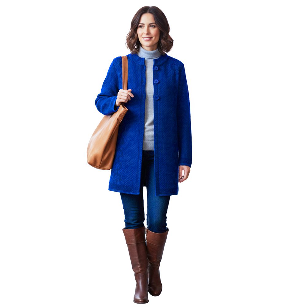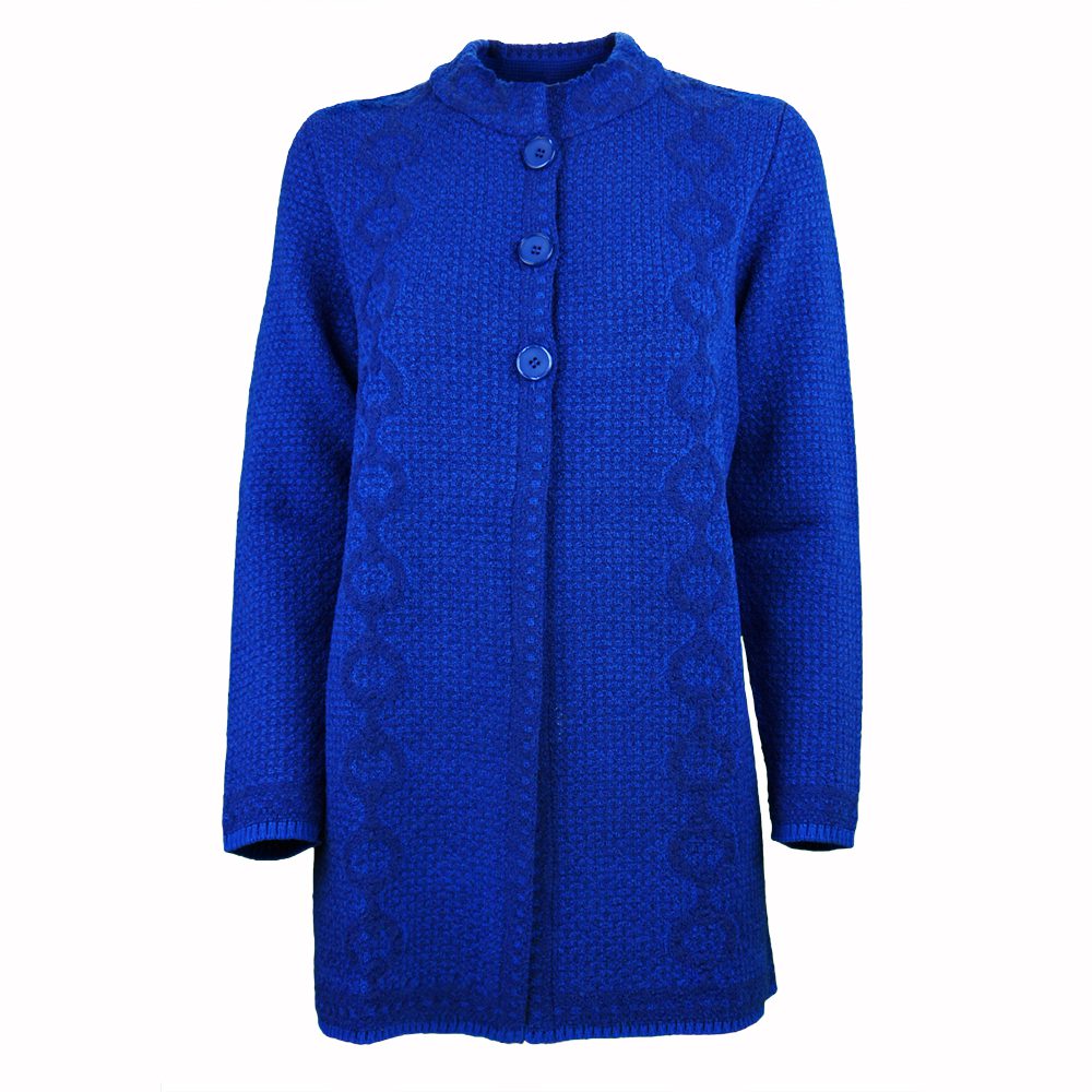 Cappotto in maglia chiusura 3 bottoni in madreperla, senza fodera, lavorazione con diverse tipologie di punti, lana di prima tosa, tinta in filo, molto morbido non pizzica.