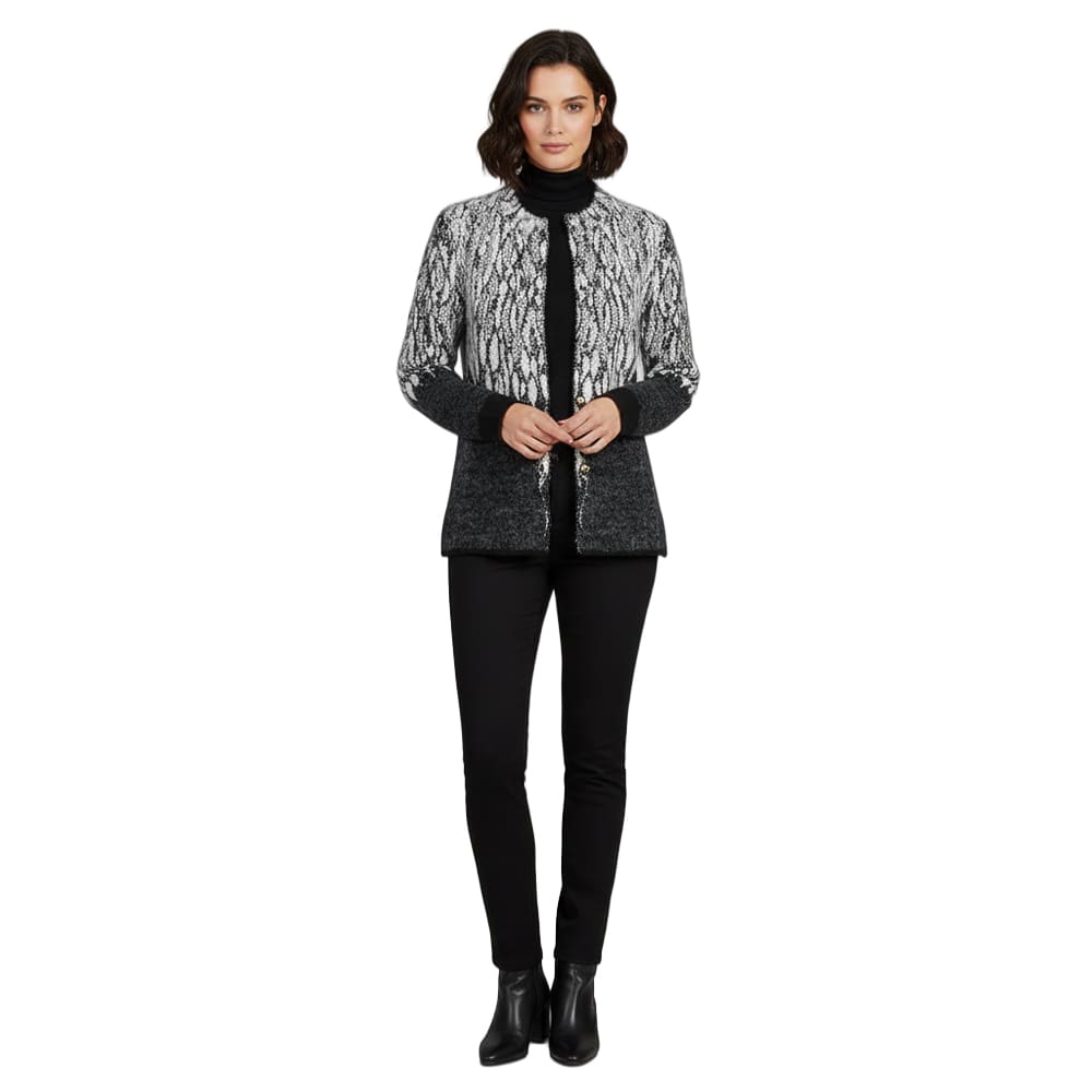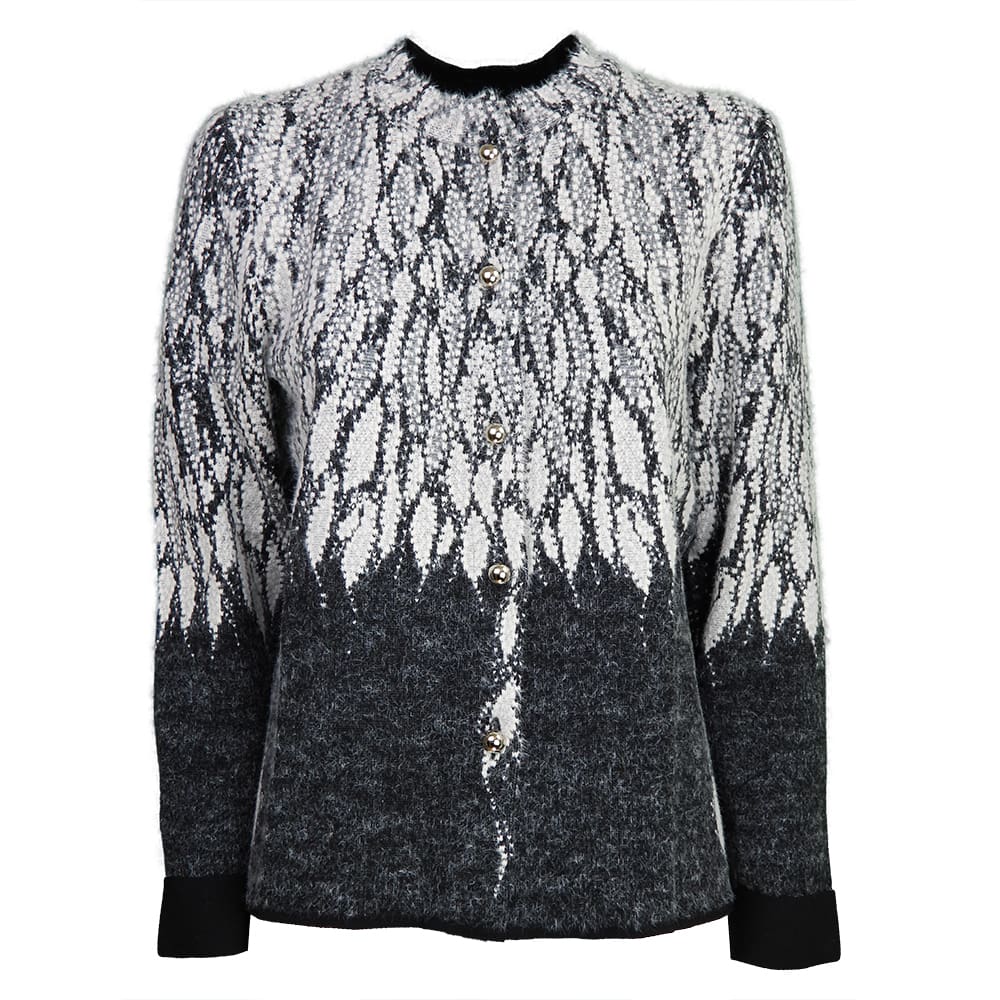 Cardigan bottoni in maglia, senza tasche, lavorazione con diverse tipologie di punti, lana di prima tosa, tinta in filo, disegno davanti e dietro lavorazione tipo pelo, molto morbida non pizzica.