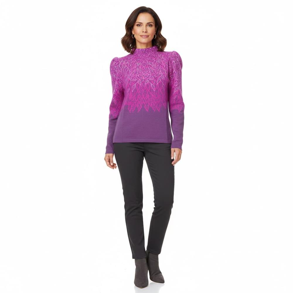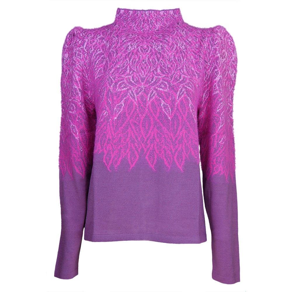 Lupetto in maglia, lavorazione con diverse tipologie di punti, lana di prima tosa, tinta in filo, disegno davanti e dietro lavorazione tipo pelo, maniche a sbuffo, molto morbida non pizzica.